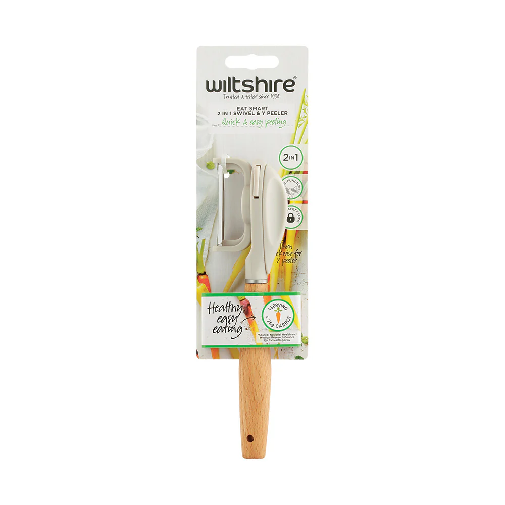 [shortdesc]Space saving, multi-functional and a super sharp blade - what more can you ask from a peeler? You canāt live without a good peeler! Both comfortable to hold and stylish to look at, this 2 in 1 Peeler combines both the humble swivel peeler and Y peeler in one with just a turn of a safety knob. [/shortdesc]